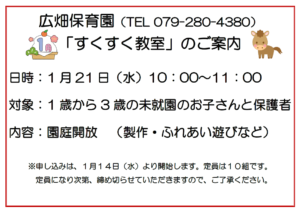 1月のすくすく教室を行いますので、ぜひ、ご参加ください。