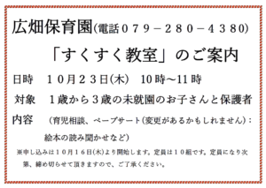 10月のすくすく教室を行いますので、ぜひ、ご参加ください。